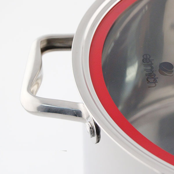 Tay cầm trên nắp vung được tán đinh tán chắc chắn. Quai nồi bằng inox cứng chắc, bưng bê dễ dàng.