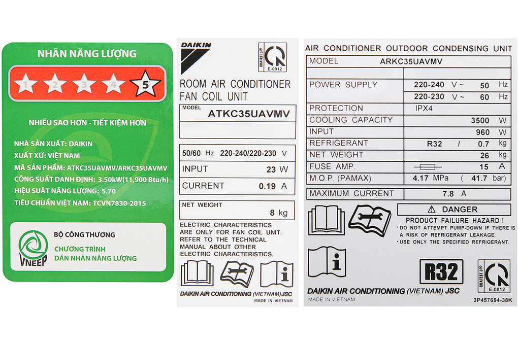 Nhãn năng lượng: 5 sao (Hiệu suất năng lượng 5.7)