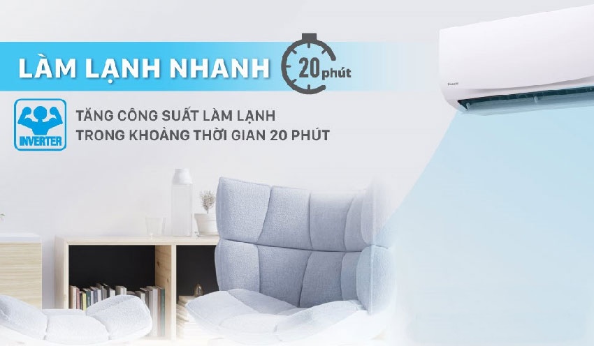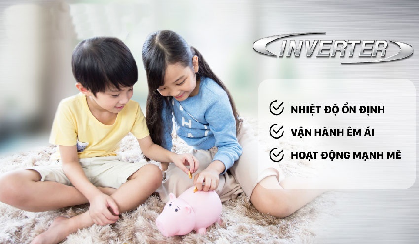 Công nghệ Inverter sẽ điều chỉnh tốc độ quay động cơ máy nén phù hợp với công suất làm lạnh mà không phải liên tục bật tắt máy nén. Khi nhiệt độ phòng gần đạt đến nhiệt độ cài đặt, máy sẽ duy trì ở nhiệt độ ổn định. Công nghệ INVERTER giúp tiết kiệm hóa đơn tiền điện đáng kể so với các dòng không INVERTER. Đồng thời, cải tiến độ ồn dàn nóng và dàn lạnh giúp máy hoạt động êm ái, duy trì nhiệt độ ổn định và đạt công suất tối ưu.