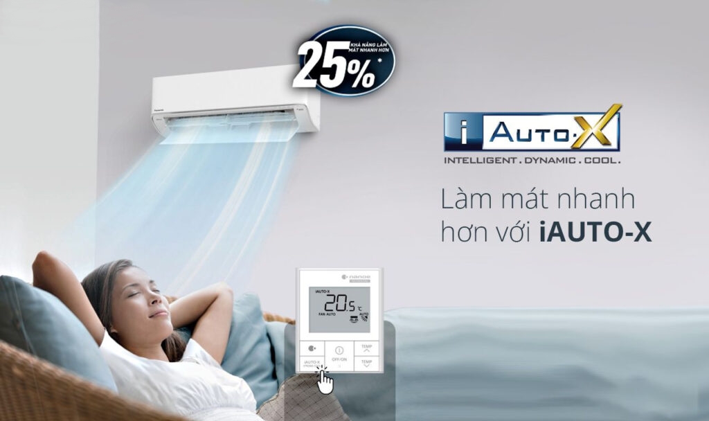 Chế độ làm lạnh nhanh iAutoX của điều hòa có khả năng đẩy mạnh công suất, giúp nhanh chóng đạt tới nhiệt độ cài đặt, đem lại cho người dùng cảm giác mát lạnh sảng khoái chỉ ít phút sau khi khởi động điều hòa.
