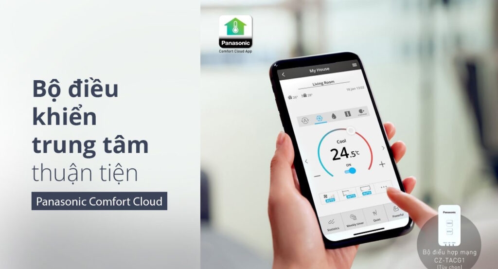 Mặc dù không được trang bị công nghệ wifi nhưng người dùng có thể lắp thêm Router Wifi để kết nối với ứng dụng Panasonic Comfort Cloud trên điện thoại. Qua đó có thể điều khiển mọi chức năng của điều hòa thông qua điện thoại như một chiếc điều khiển thông thường vô cùng tiện lợi.