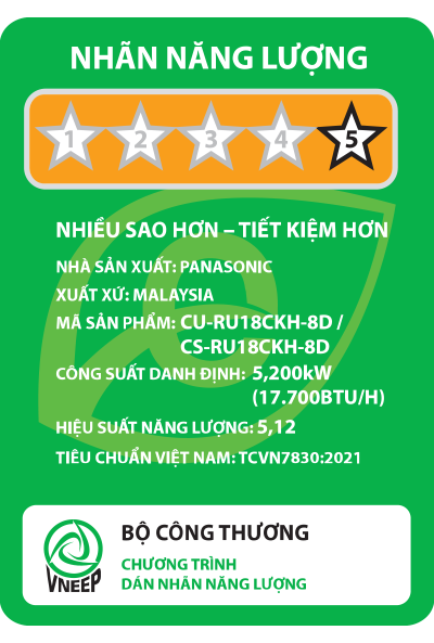 - Nhãn năng lượng: 5 sao (hiệu suất năng lượng 5.10), tiêu thụ điện năng ~1.71 kW/h.