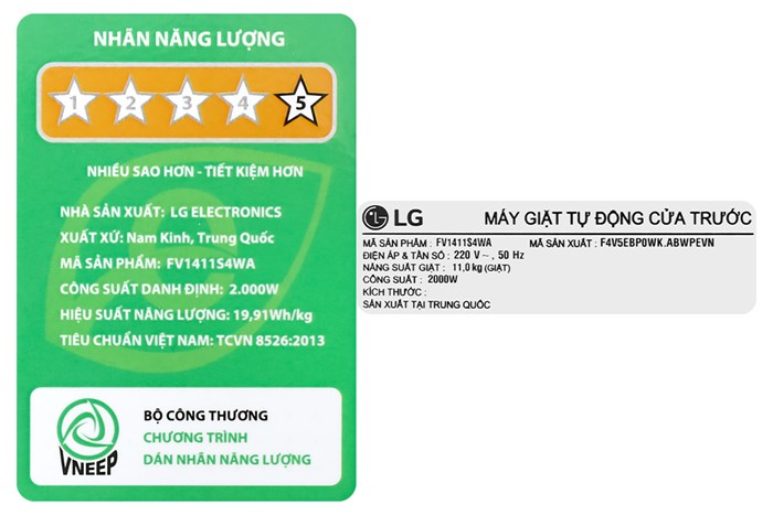 - Hiệu suất sử dụng điện khoảng 19.91 Wh/kg với nhãn năng lượng 5 sao .