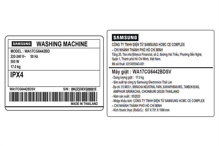 Cao 106.8 cm - Ngang 63.7 cm - Sâu 70.1 cm - Nặng 45 kg