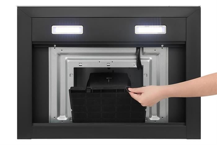 - Bộ lọc khử mùi than hoạt tính (tích hợp trong máy) giúp hấp thụ và khử mùi hiệu quả, trả lại bầu không khí trong lành cho gian bếp. Tùy vào tần suất sử dụng, người dùng nên thay than hoạt tính sau 6 - 12 tháng sử dụng, tần suất dùng cao có thể thay sau 3 tháng.