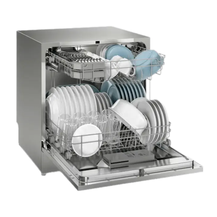 - Máy rửa bát được trang bị 2 khay rửa và có giá rửa dành riêng cho đũa muỗng tối ưu không gian bên trong để sắp xếp chén đĩa một cách dễ dàng, máy có khả năng chứa tối đa 8 bộ chén đĩa theo tiêu chuẩn châu Âu.