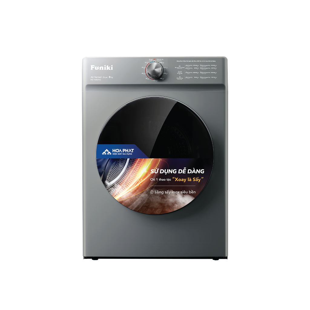 Funiki HDV680AG có khả năng sấy từ 8 đến 10kg quần áo. Khối lượng sấy thực tế tối ưu là 8kg. Người dùng có thể tùy chỉnh khối lượng sấy phù hợp với nhu cầu.