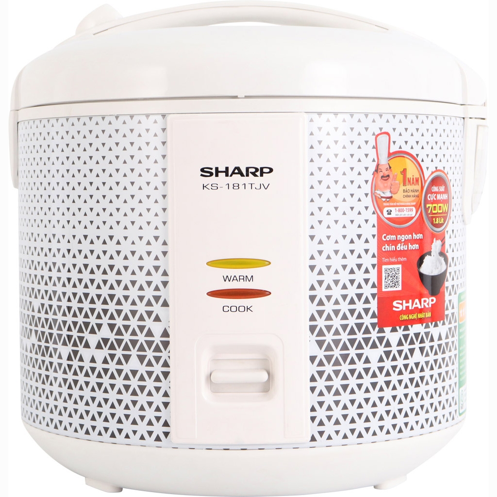 Nồi cơm nắp gài Sharp KS-181TJV đến từ thương hiệu nồi cơm điện số 1 Nhật Bản – Sharp, sản phẩm có kiểu dáng đẹp, sử dụng bền lâu, thiết kế tiện dụng, thích hợp cho các gia đình đông người và cho các nhóm sinh viên, học sinh sử dụng nấu cơm hằng ngày.