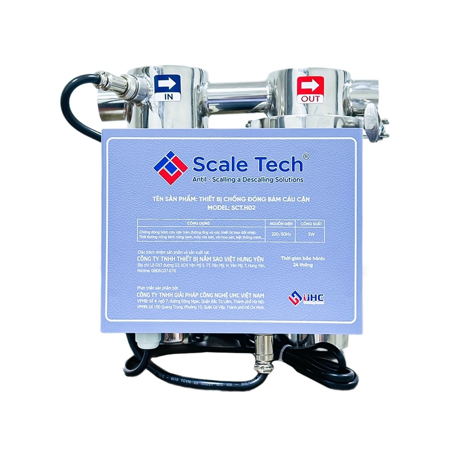 UHC đã nghiên cứu và phát triển dòng thiết bị ScaleTech – sử dụng công nghệ Trường lượng tử, giúp ngăn cặn hình thành, bào mòn cáu cặn sẵn có mà không dùng điện, không hóa chất, không phát sinh nước thải, không lấy Canxi ra khỏi nước.