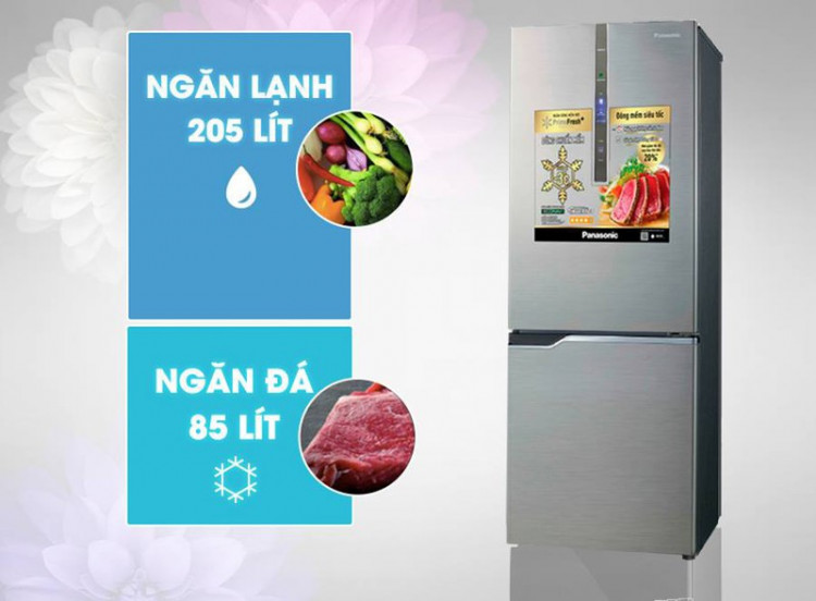 Tủ lạnh này có tổng dung tích 290 lít chia làm 2 ngăn; ngăn mát phía trên có dung tích 205 lít, ngăn đông phía dưới có dung tích 85 lít đáp ứng trữ thực phẩm cho gia đình từ 3 đến 5 thành viên.